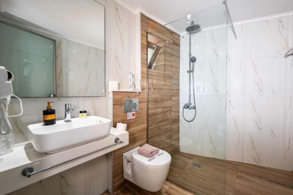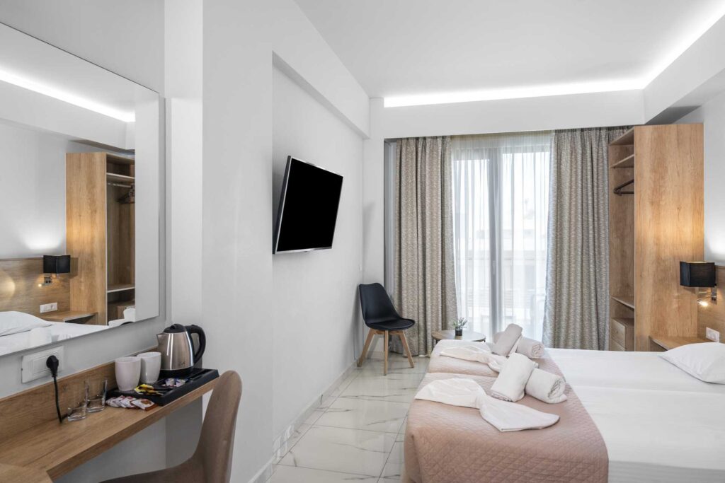 The rooms include a desk, a wardrobe and a comfortable private bathroom with shower, bath amenities and hairdryer. They also feature modern facilities such as a smart TV with satellite channels, individually controlled air conditioning, and a safe-box.